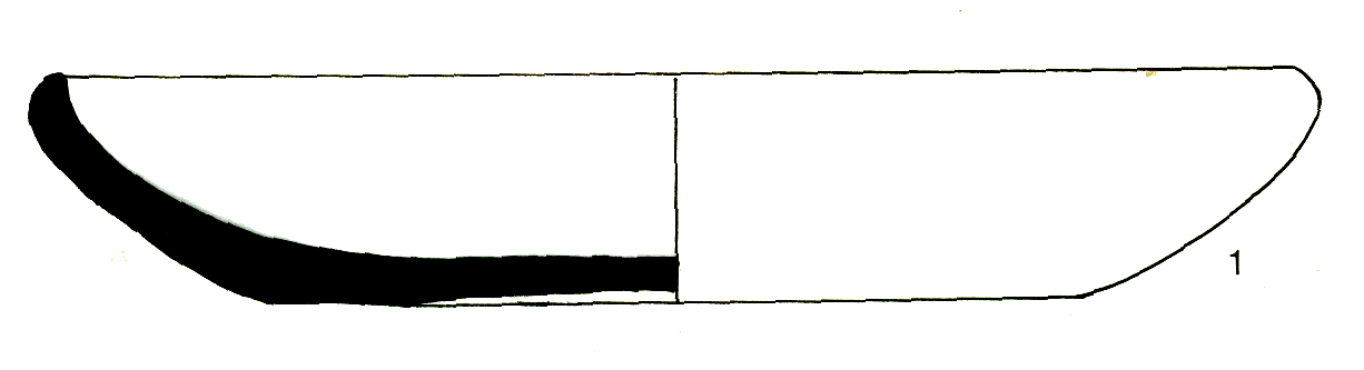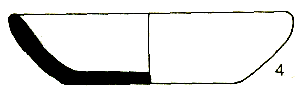 base étirée, assise plane ; céramique tournée, pâte de couleur noire, jaunâtre en surface ;
