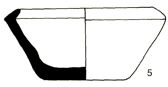 Jatte aux parois divergentes rectilignes ; rebord incliné vers l'intérieur, lèvre triangulaire ;