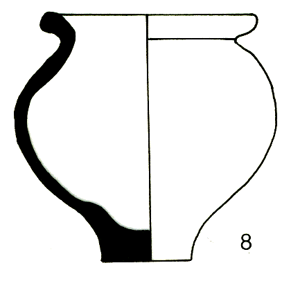 Pot de forme elliptique aplatie ; encolure verticale, concave, rebord épaissi à l'extérieur, lèvre convexe ;