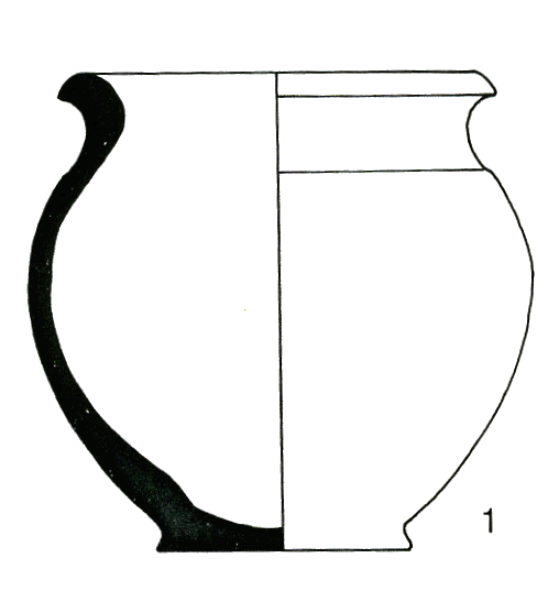 céramique tournée de couleur grise en surface ; inclusions moyennes: quartz irrégulier en proportion moyenne, mica ; surface brute.
